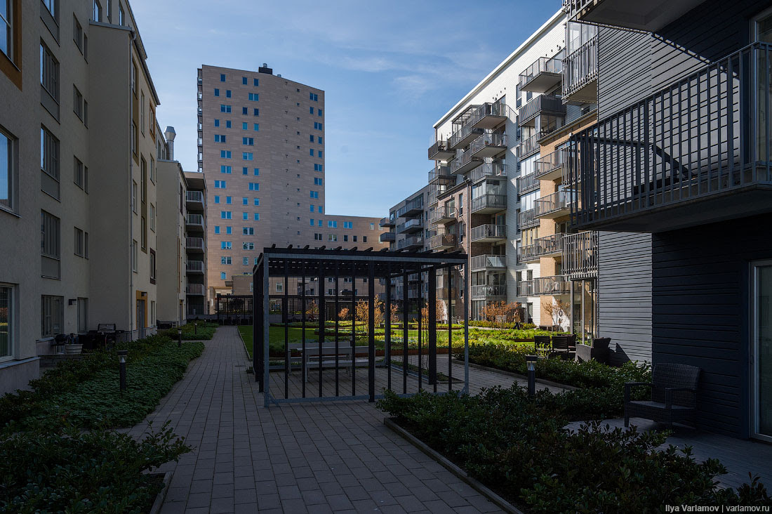 Посмотрел, как строят новое жилье шведы. Что можно сказать... Всё у них не как у людей. Во-первых, они совершенно нерационально используют землю. Вместо того, чтобы построить 30-этажные башни-муравейники, они строят 5-7 этажные дома. Во-вторых, все дома построены из нормальных материалов, и ещё никто тут не использует клоунскую раскраску. Скучные люди, ведь могли бы все сделать кислотно-зеленым, синим и розовым. Как у нас любят. В-третьих, тут все дворы открыты, можно зайти в любой, и каждый двор сделан для людей. Нет никаких парковок, зато есть крутое благоустройство, грили, зоны для отдыха. А ГДЕ МАШИНУ ПАРКОВАТЬ? Дикие люди эти шведы, не могут ничего нормально построить. Надо бы к ним пригнать наш ДСК-СУ-666, чтобы мы им показали, как надо в 2016 году строить жилье для людей.